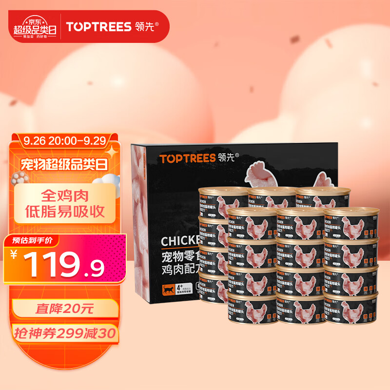 领先(Toptrees)猫罐头 低敏全鸡肉 猫零食湿粮 成猫幼猫 整箱24罐*80g