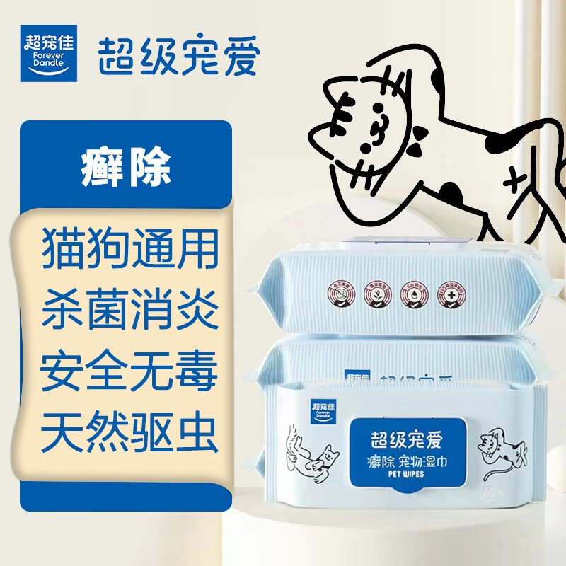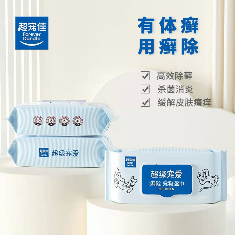 超宠宠物湿巾猫狗通用 EDI纯水湿巾无酒精0添加经口无毒除癣清新口气淡化泪痕防虫叮咬杀菌消炎杀菌消炎 宠物除癣湿巾 60抽*4包