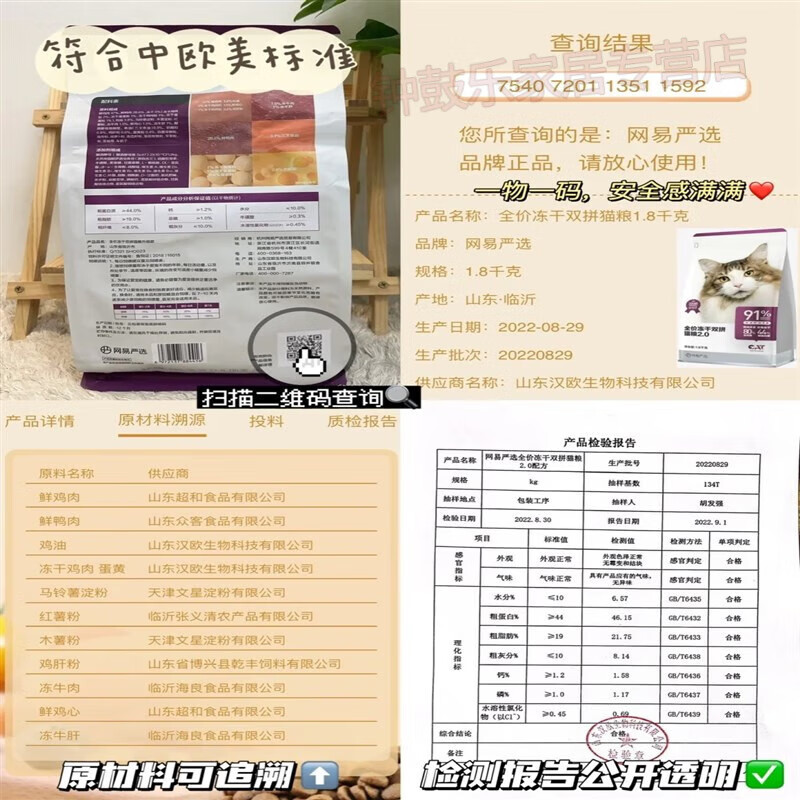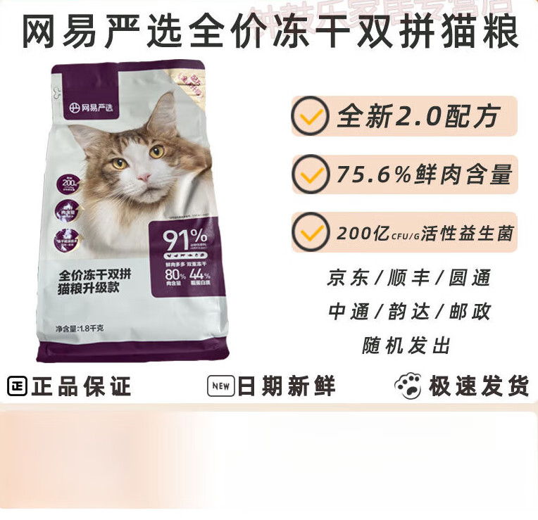 网易严选全价冻干双拼猫粮1.8kg 无谷高肉含量增肥成猫幼猫猫粮 1.0 经典款【囤货自发】48小时 1.8kg单包