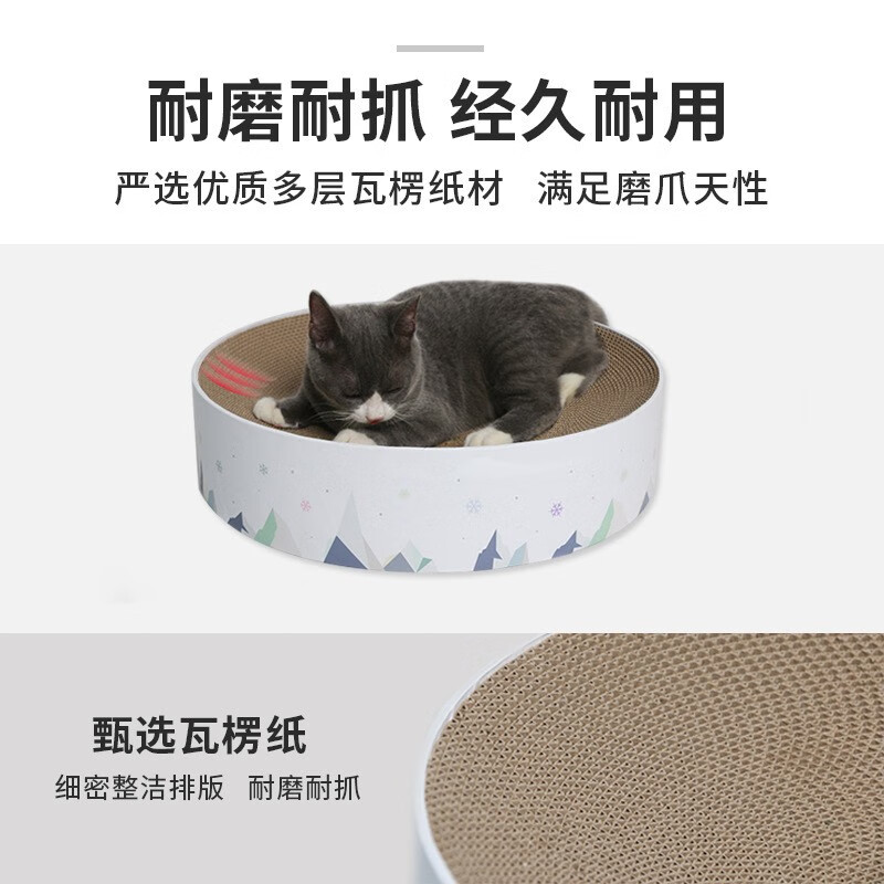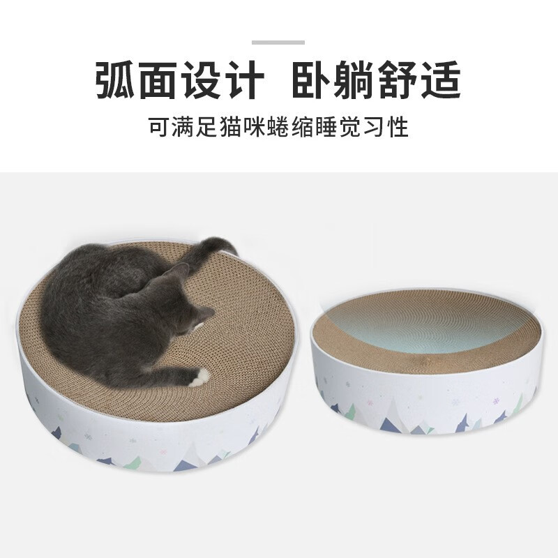米小舒猫抓板猫玩具大号猫抓盆猫窝猫用品猫抓垫逗猫宠物猫爪板自嗨猫球猫咪磨爪板猫抓板窝一体圆形特大 雪山猫抓板 大号【410*410*100】