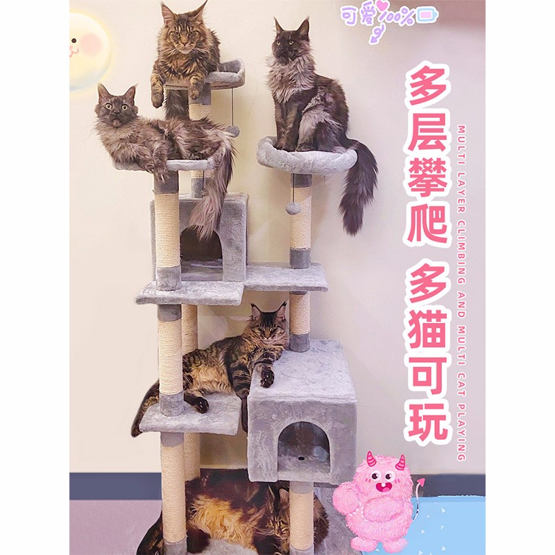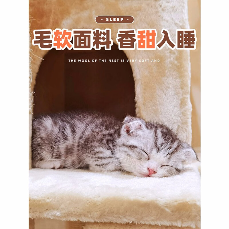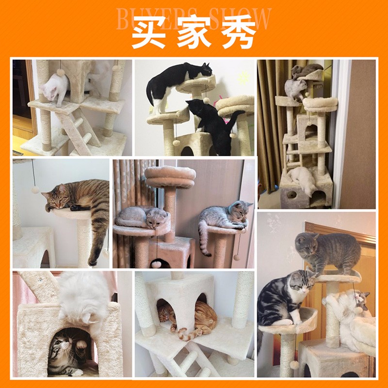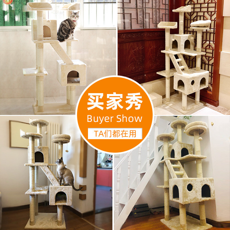hoopet猫爬架猫树猫窝一体大型超大猫跳台宠物通天柱猫架子猫咪用品小型 多层豪华米白色猫爬架(配猫窝)