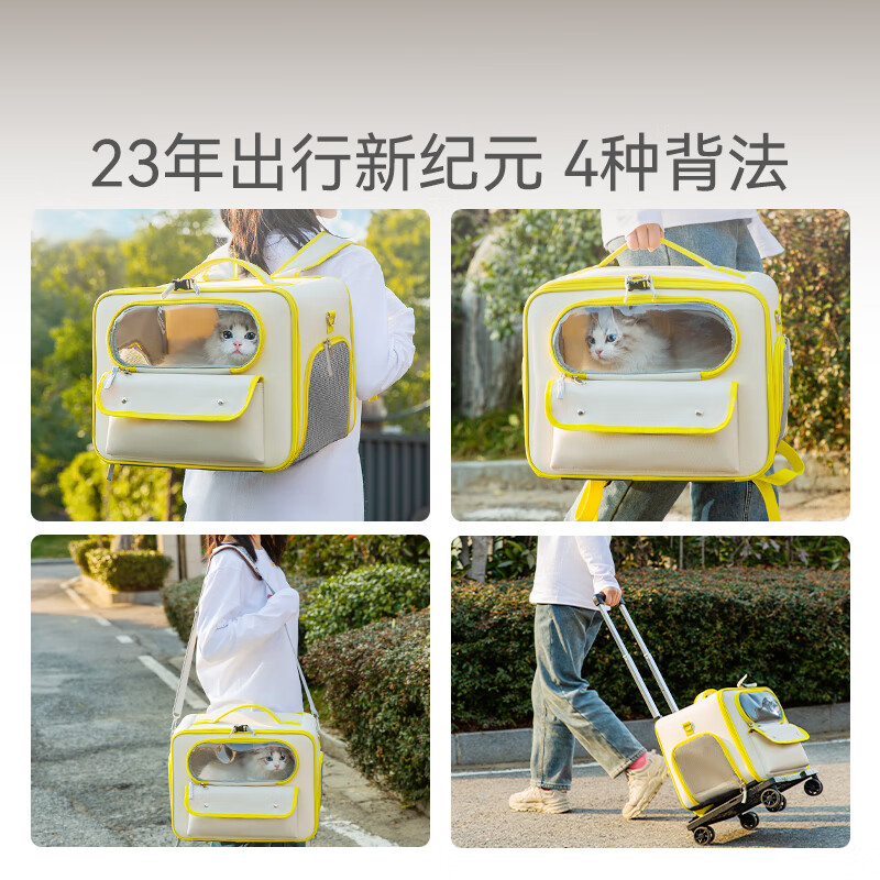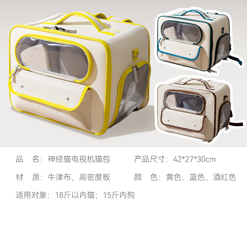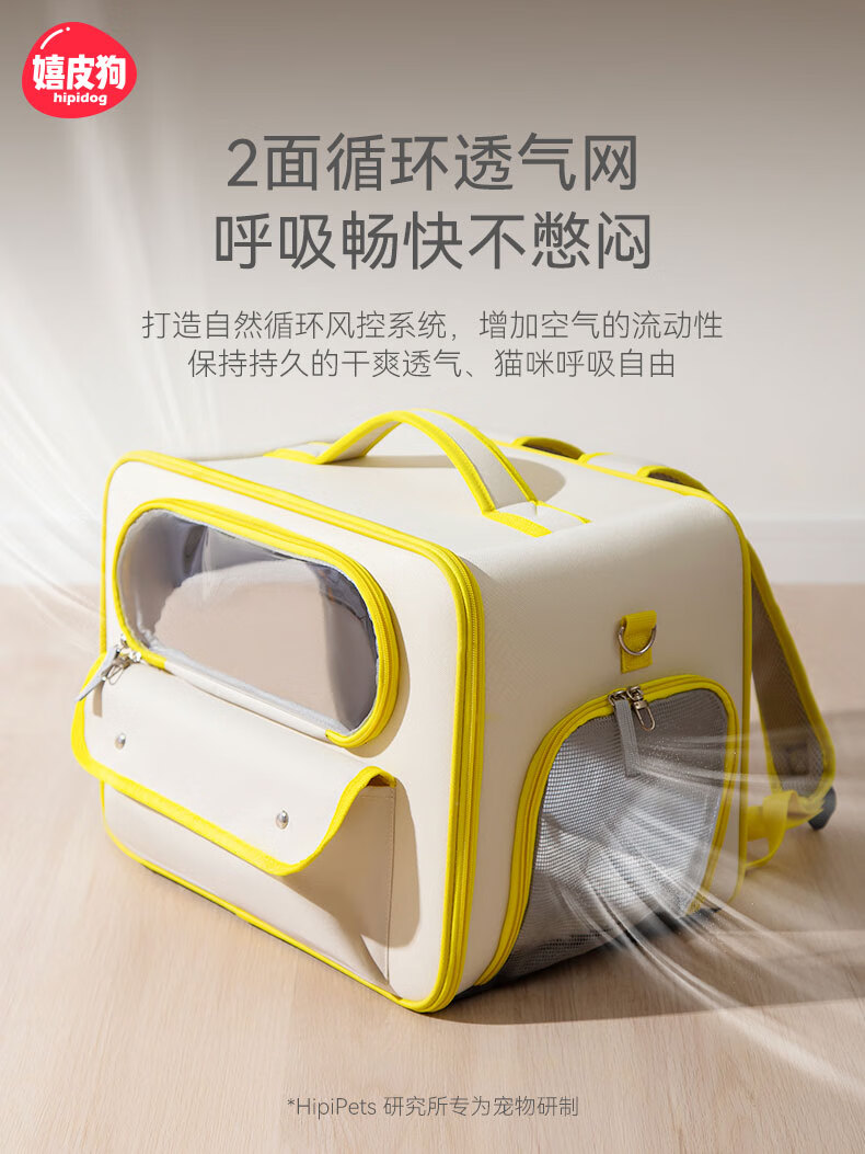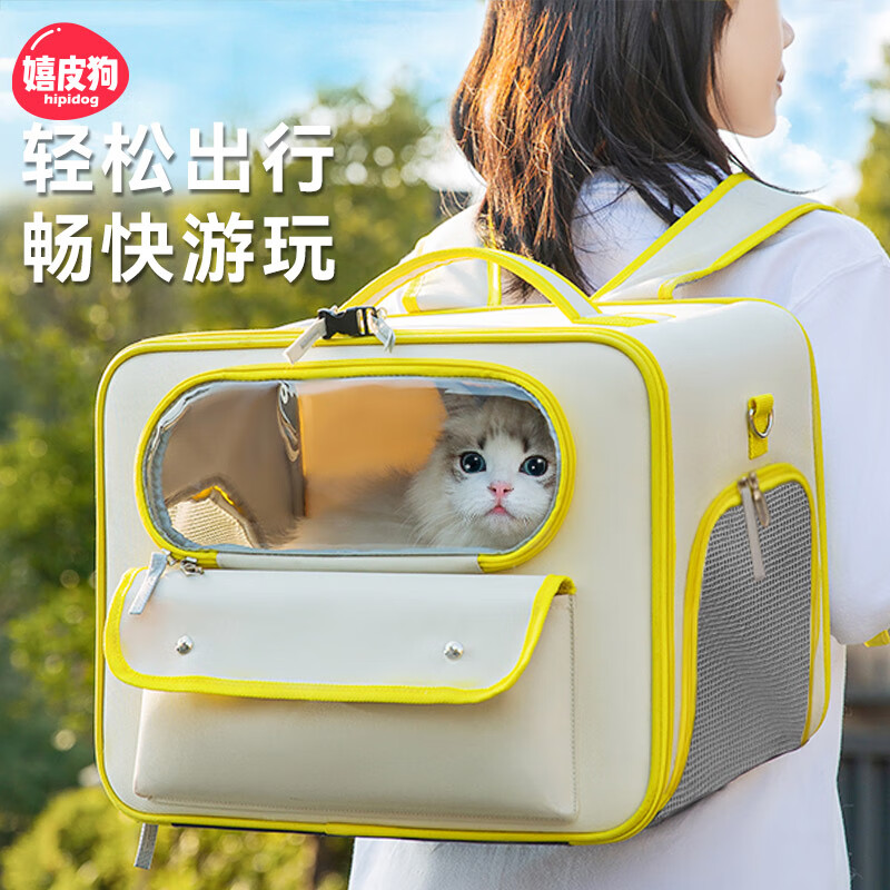 嬉皮狗猫包外出便携太空舱宠物包猫咪背包幼猫猫箱提包外带双肩包便携 黄色(18斤内) 42*27*30cm