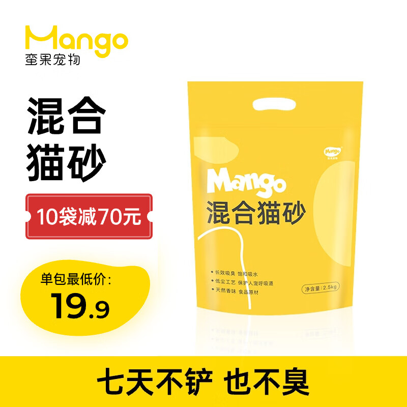 Mango蛮果宠物混合猫砂豆腐去味除臭无尘猫沙2.5kg活性炭膨润土豆腐高效除味易结团省用量 【一袋尝鲜】2.5kg*1袋