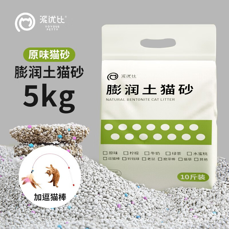 派优比 膨润土猫砂10斤装快速除臭结团包裹性好膨润土猫砂混合膨润土砂 【高性价比】原味10斤 逗猫棒