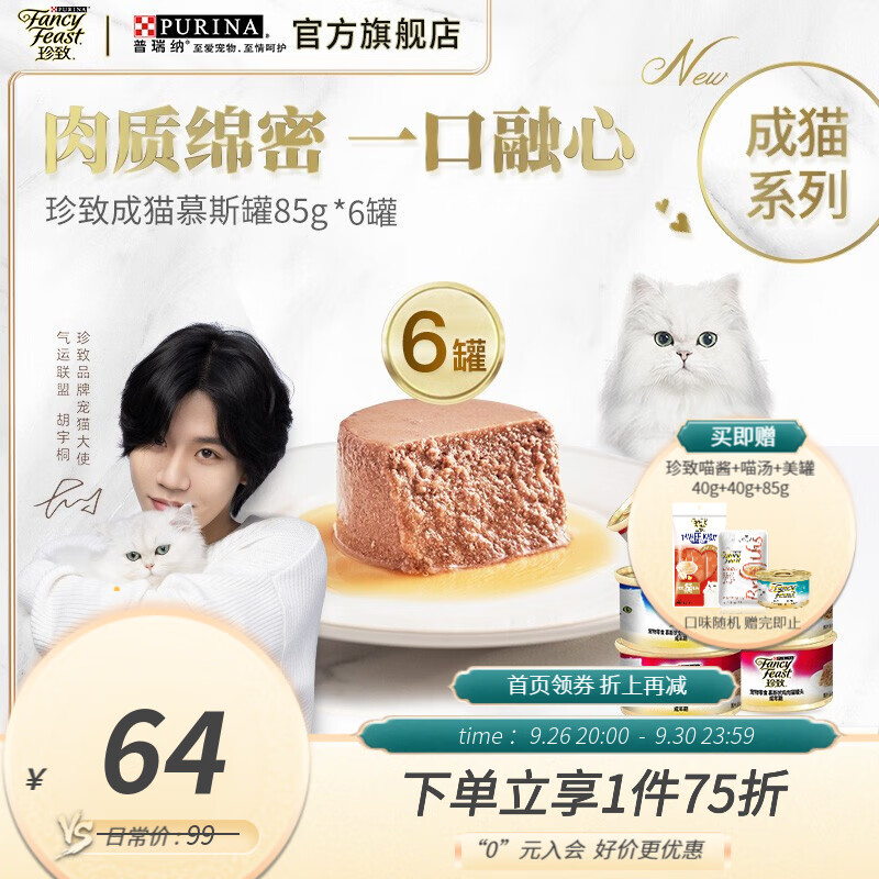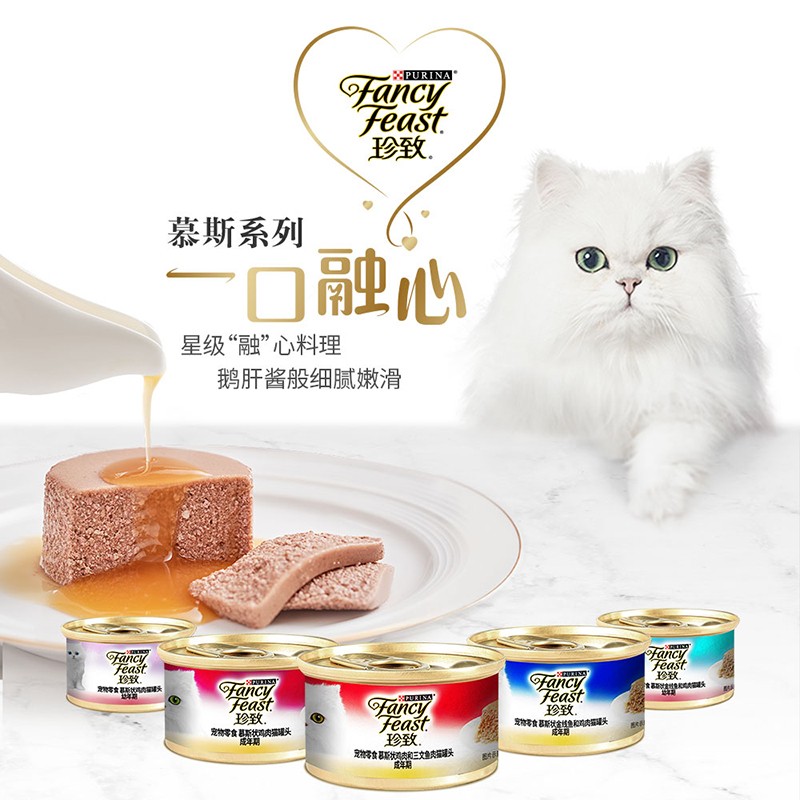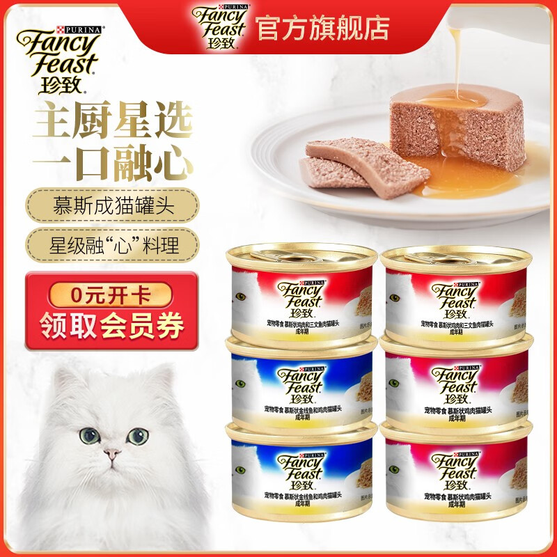 珍致(FancyFeast)慕斯猫罐头 进口湿粮罐头 猫零食 成猫尊享混合装85g*6