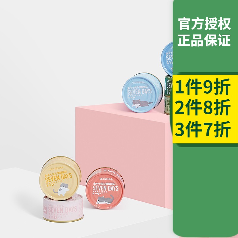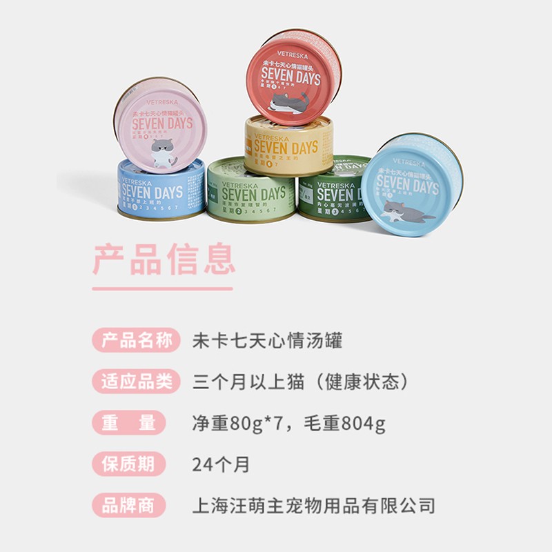 未卡7天心情汤罐80g/罐 宠物猫咪肉罐头 成猫幼猫湿粮餐盒肉类零食 7天星期罐(80g*7罐)