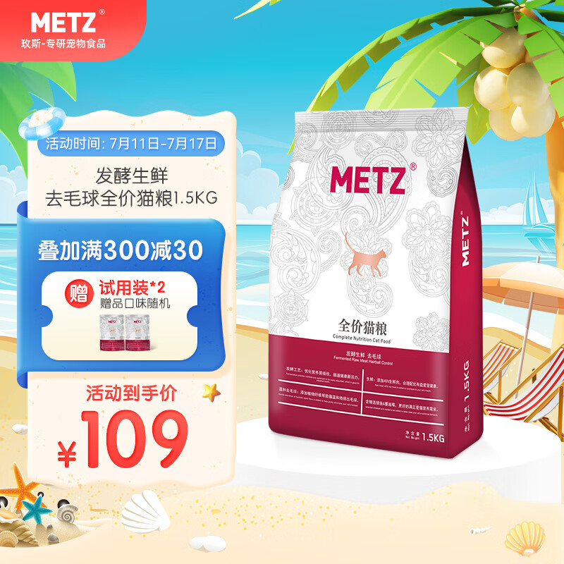 玫斯(METZ)猫粮 发酵生鲜系列全价猫主粮 布偶英美短蓝猫通用 去毛球猫粮1.5kg