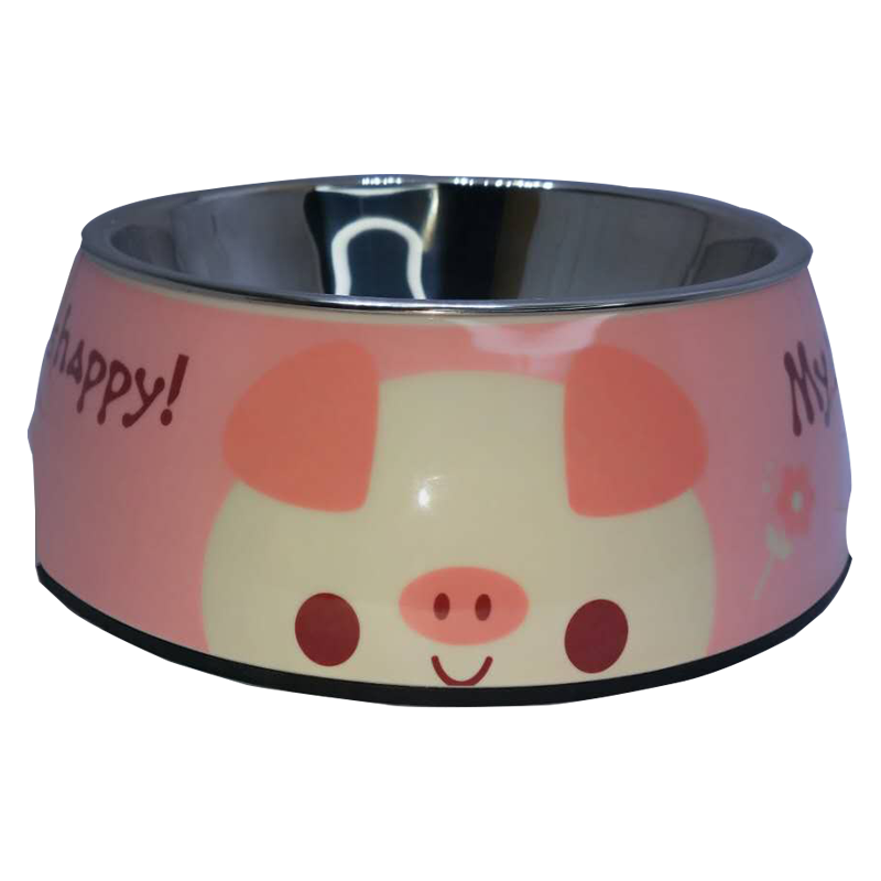 憨虎宠物狗盆猫碗猫盆狗食盆猫食盆大中小型喝水盆宠物用品狗盆双万卡通印花不锈钢宠物碗 粉色L型(大号)