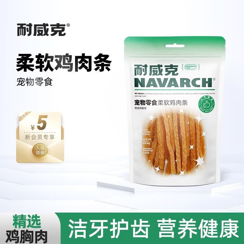 耐威克狗狗零食 宠物磨牙棒 鸡肉干训练奖励 幼犬泰迪比熊金毛柴犬洁齿 柔软鸡肉条100g