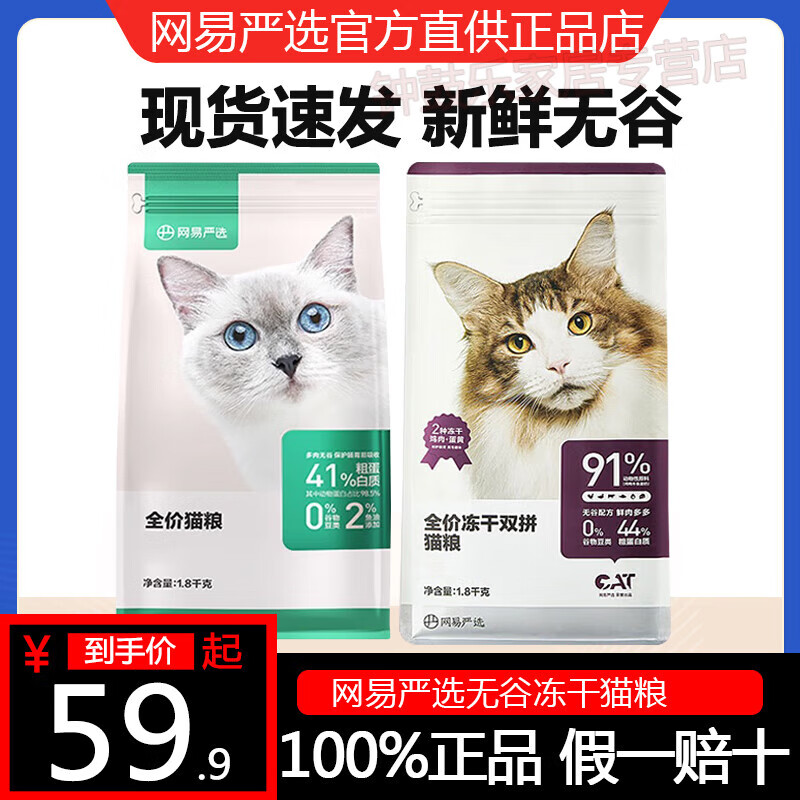 网易严选猫粮老阳无谷全价冻干双拼幼成猫全阶段鲜肉1.8kg爸 鲜肉成猫粮1.8kg 1lb见属性