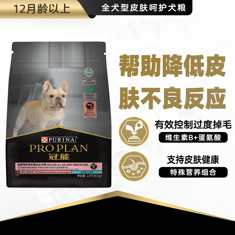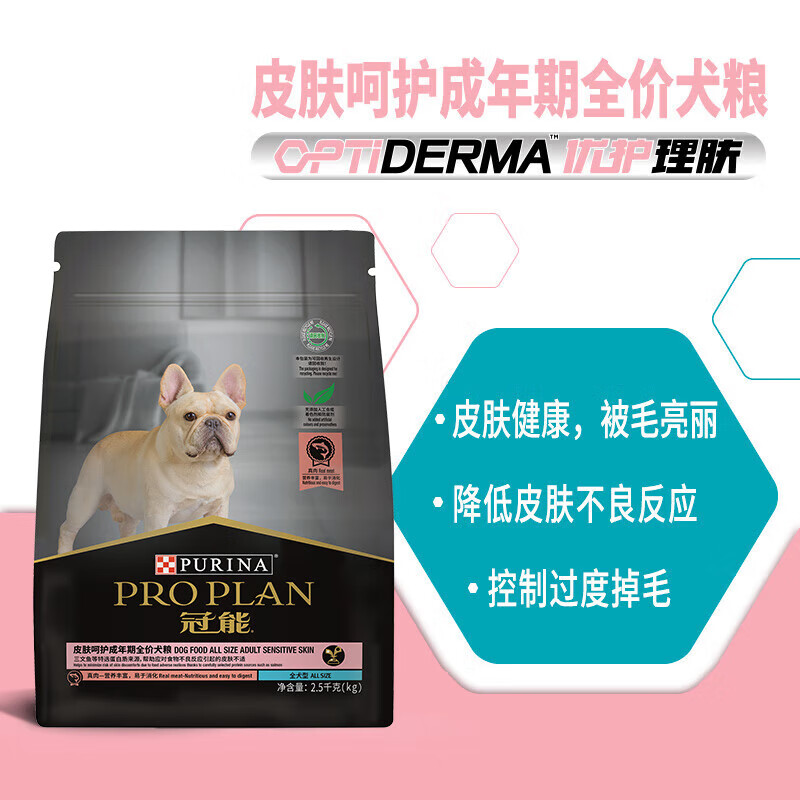 冠能(PRO PLAN)狗粮成犬全犬种助消化舒适挑食美毛绝育体重控制皮肤呵护金毛泰迪 全犬型皮肤呵护成犬2.5kg