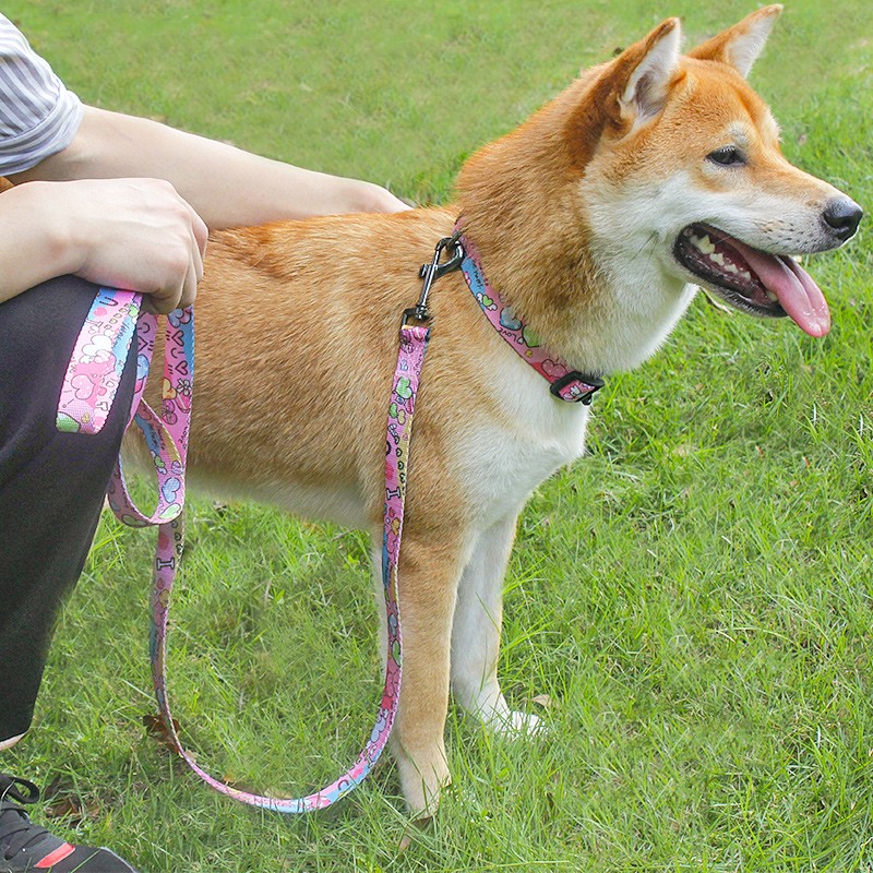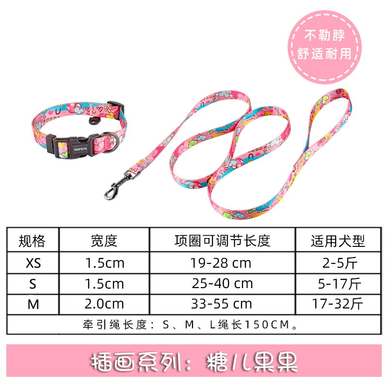 QQPETS宠物牵引绳狗狗项圈泰迪柯基卡通狗绳柴犬幼犬狗链子中小型犬遛狗绳猫狗通用 糖儿果果-套装 XS-超小型(2-10斤)