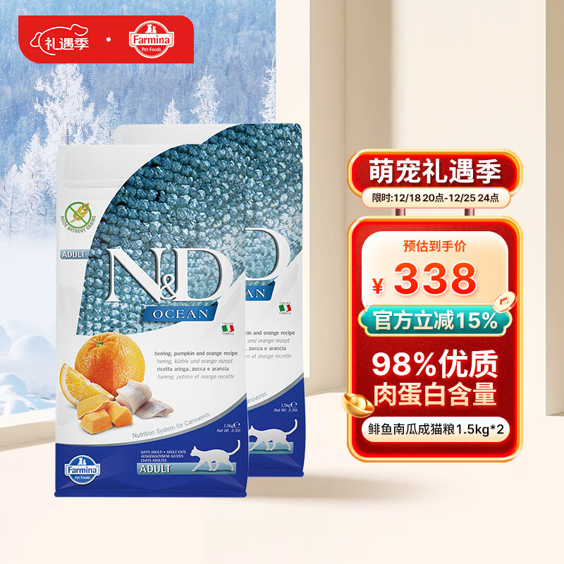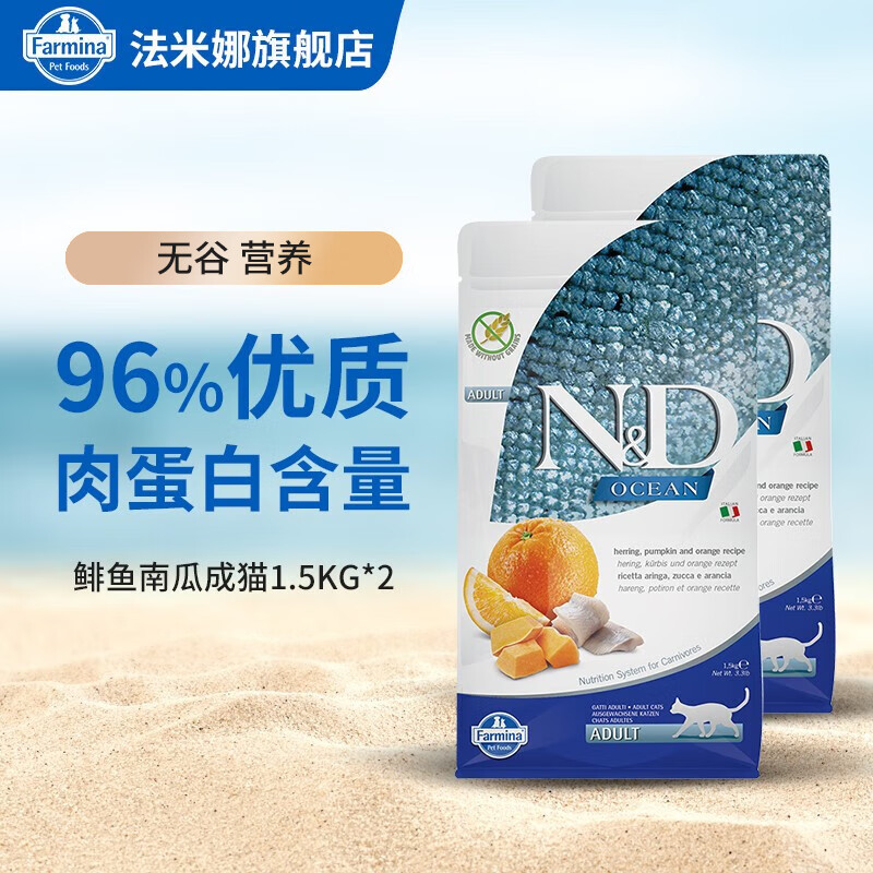 法米娜意大利进口成猫粮无谷鲱鱼甜橙南瓜猫粮 3kg(1.5kg*2)