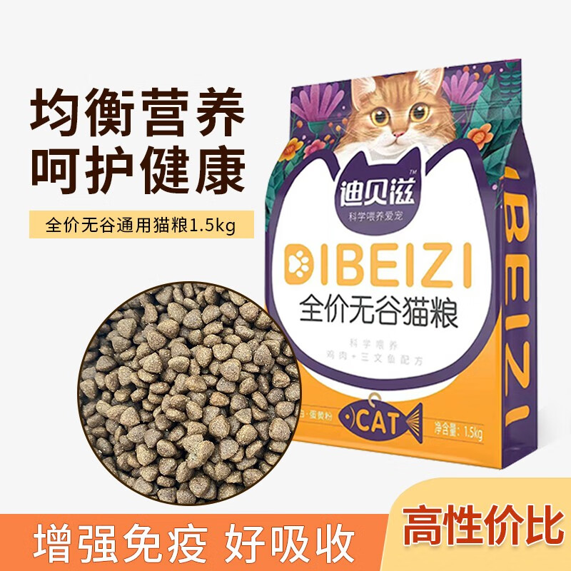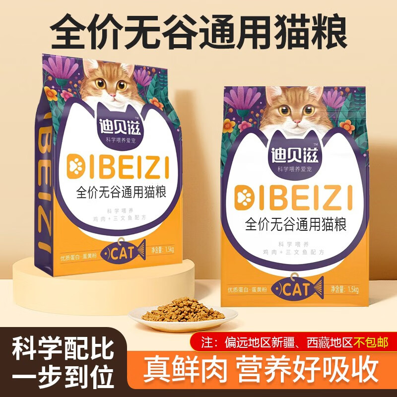迪贝滋鲜鸡肉 三文鱼猫粮 全价无谷增肥发腮成猫幼猫全阶段通用1.5kg 全阶段适用丨营养护胃1.5kg*1袋