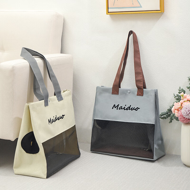 姒桀猫包外出斜跨单肩手提猫咪狗狗中犬泰迪袋子夏季透气 米色