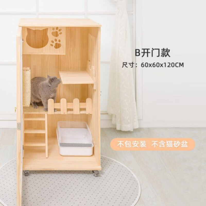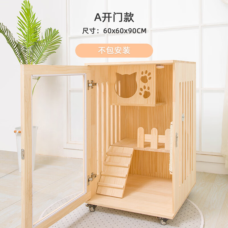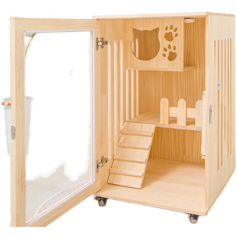 小米城堡 木质猫窝 家用双层豪华木制笼子室内猫窝猫别墅公寓二层三层猫舍 A款60*60*90不包安装 M-中型