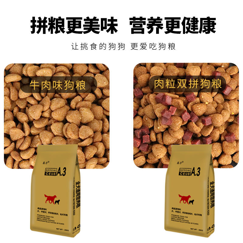 贝意品40斤泰迪金毛拉布拉多散装通用狗粮 牛肉味 双拼20KG