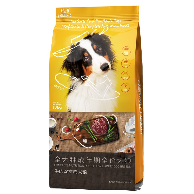 凡可奇 狗粮20斤泰迪牛肉双拼阿拉斯加哈士奇拉布拉多金毛中大型成犬全犬期通用犬粮 牛肉双拼粮 10kg【20斤】