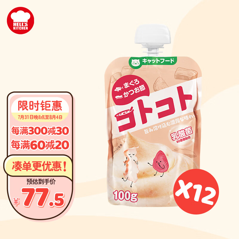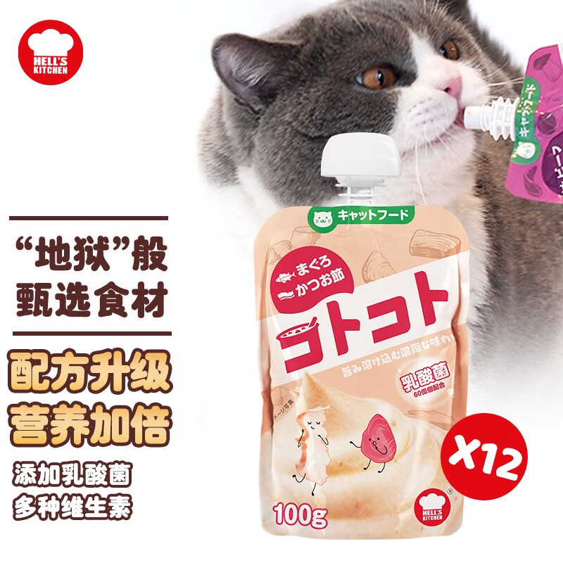 地狱厨房(Hell's Kitchen)猫零食 成猫营养猫湿粮经典咕噜酱金枪鱼柴鱼100g*12袋装