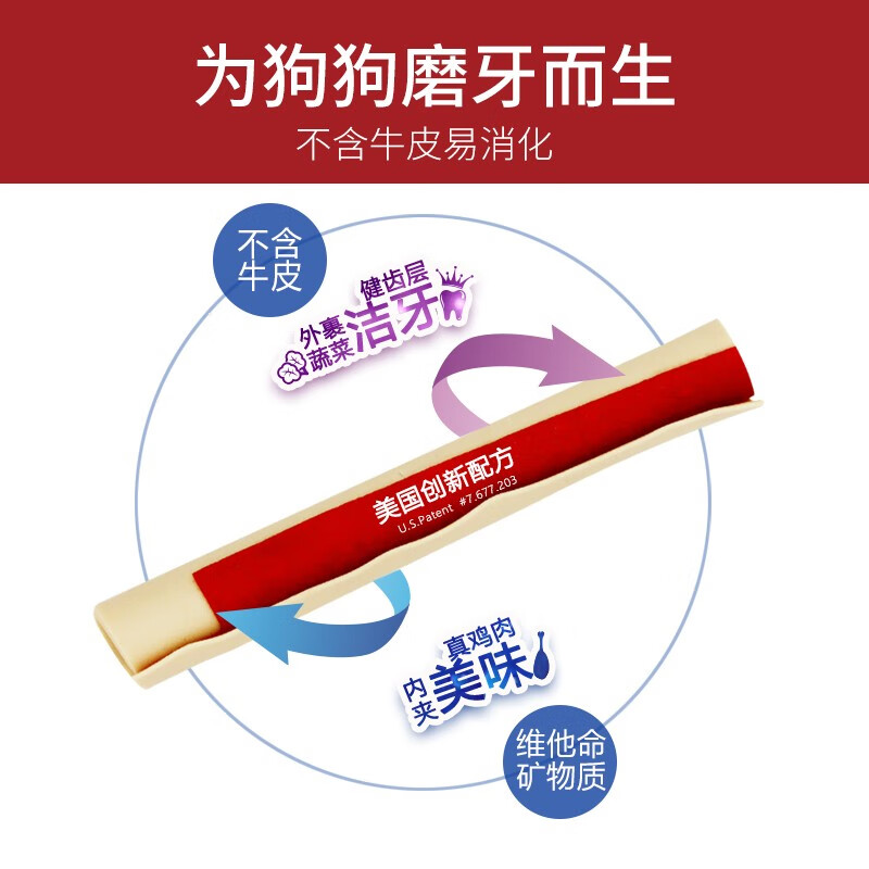 SMARTBONES狗零食磨牙棒卷片12支 小型犬狗狗洁齿骨头训练奖励耐咬胶通用 5支鸡肉味-卷棒