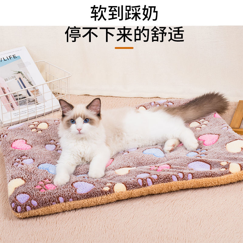 【宠物优选 都是好货】宠物狗窝垫子耐咬秋冬款猫咪睡垫狗狗睡觉用的毛毯子被子猫垫冬天 棕色爪印 1号 27*21cm 1斤内小宠可用