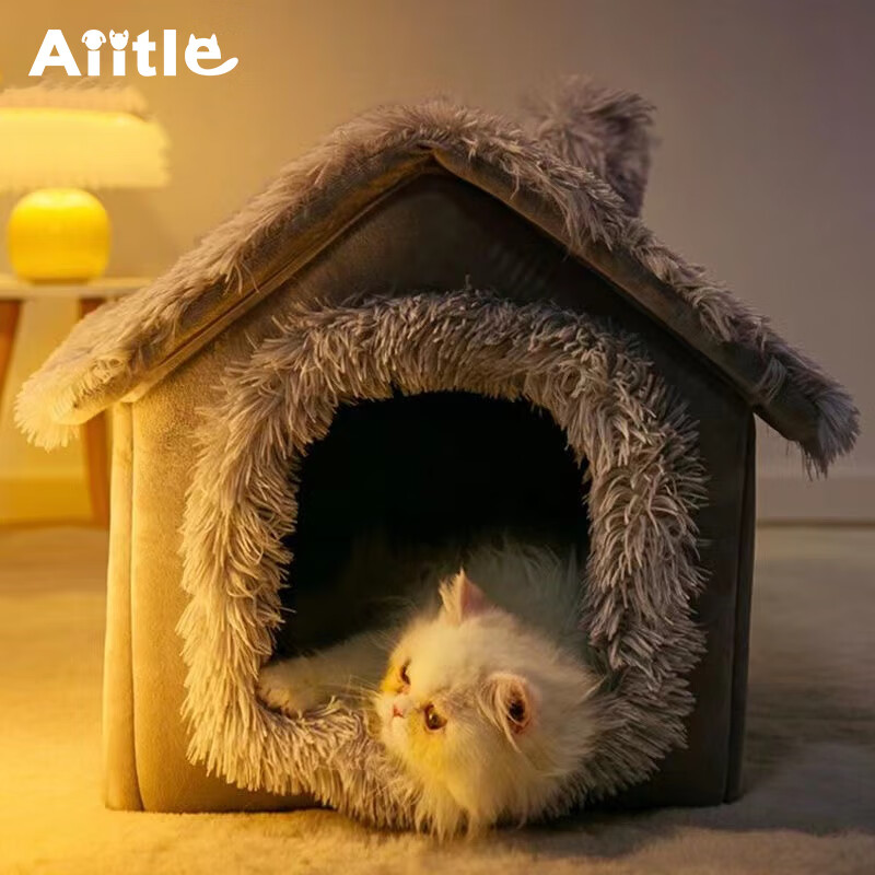 爱它乐 猫窝冬季保暖四季通用房子型床屋别墅封闭式冬天狗窝宠物猫咪用品 灰色小房子m