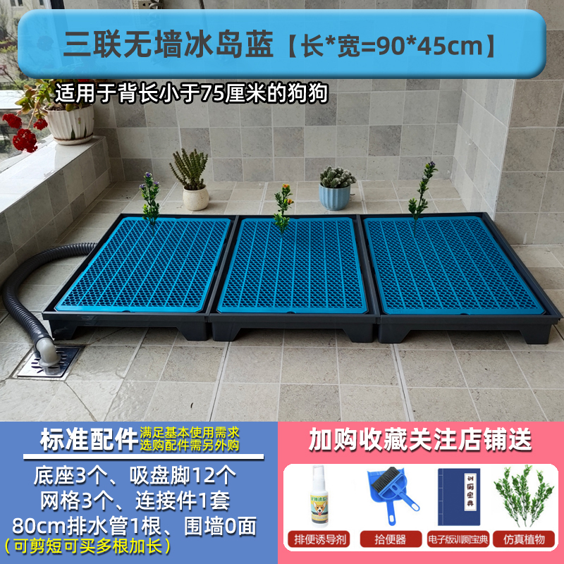 二代冲水狗厕所直排下水道大型中型犬型犬泰迪法斗金毛尿盆自动便便神器免尿垫 3联无墙冰蓝