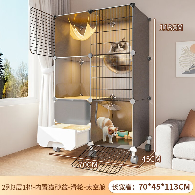 蔻丝猫笼子超大号猫窝猫咪别墅带厕所一体适合大猫家用室内猫舍屋猫笼 【70*45*113】带滑轮 易清理 猫厕一体:猫砂盆 太空舱 猫砂铲