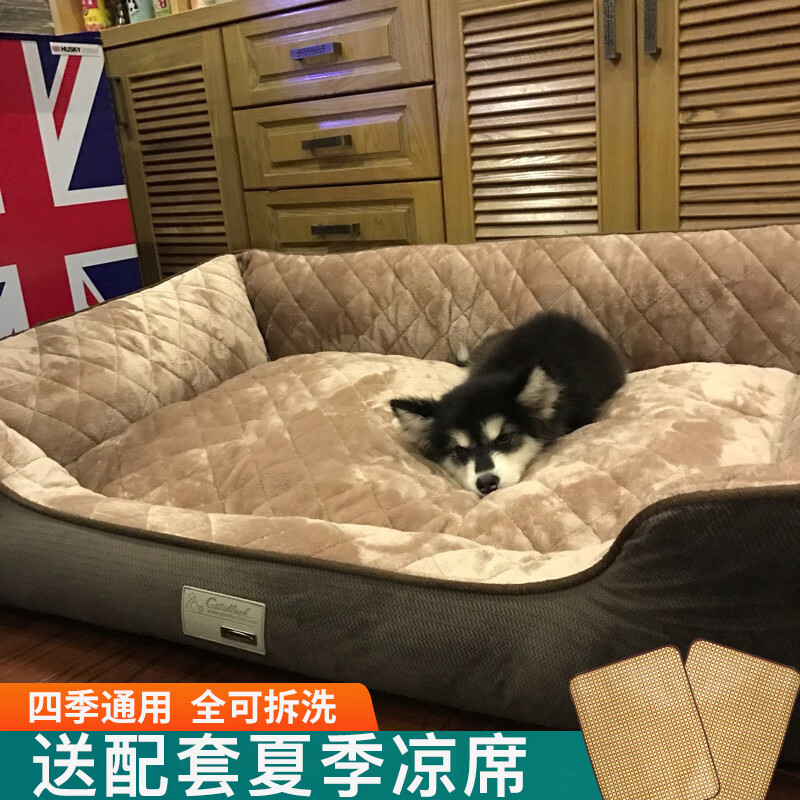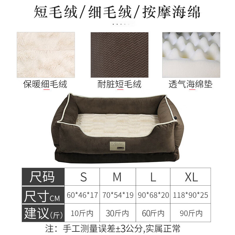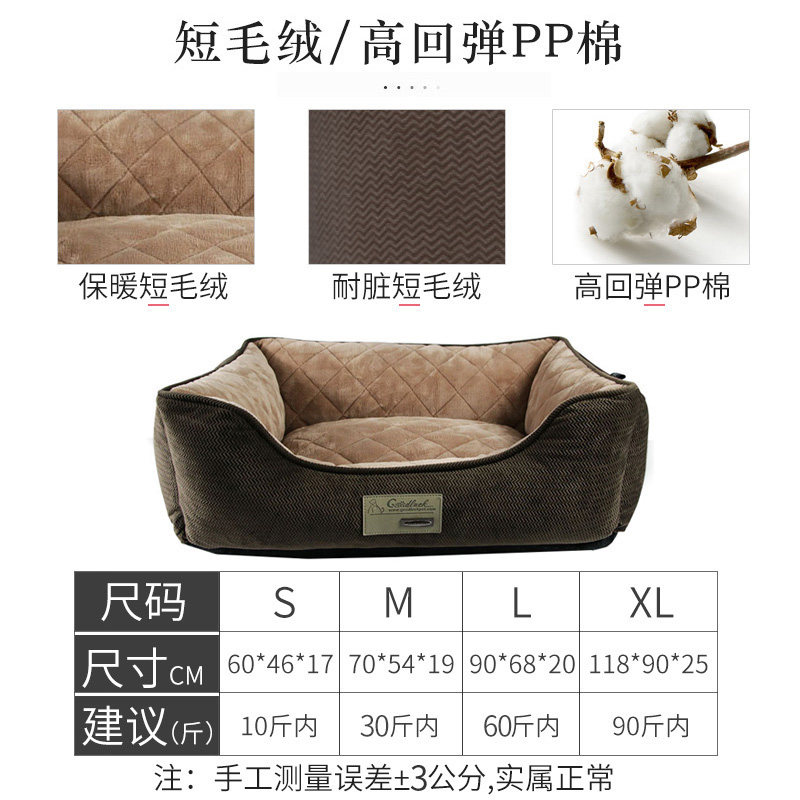 .大型犬狗窝夏季透风驱蚊狗窝四季通用可拆洗中大型犬金毛狗垫狗床宠物窝夏天凉窝狗狗用品 经典棕色狗窝【底部三维PP棉】 S号: 泰迪 博美 猫咪 雪纳瑞等【10斤内】