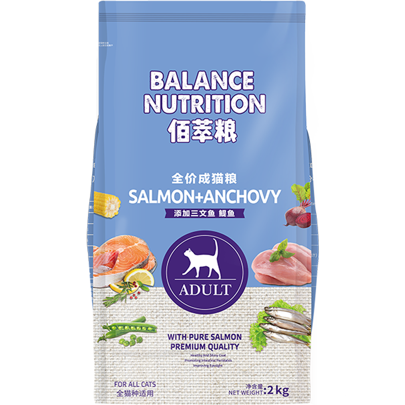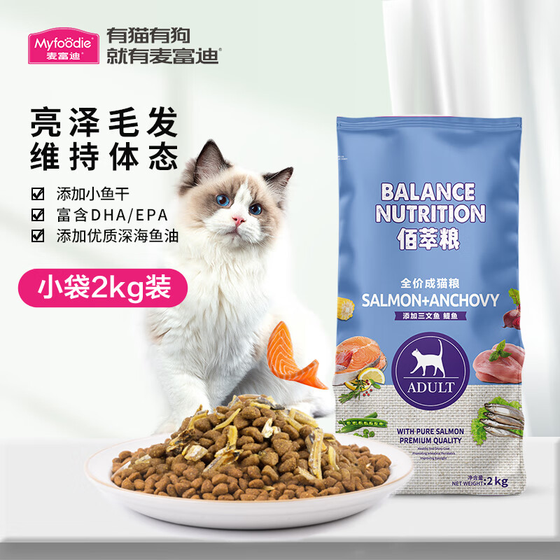 霆特麦富迪佰萃猫粮 添加小鱼干 天然成猫 三文鱼 鳀鱼 成猫2Kg