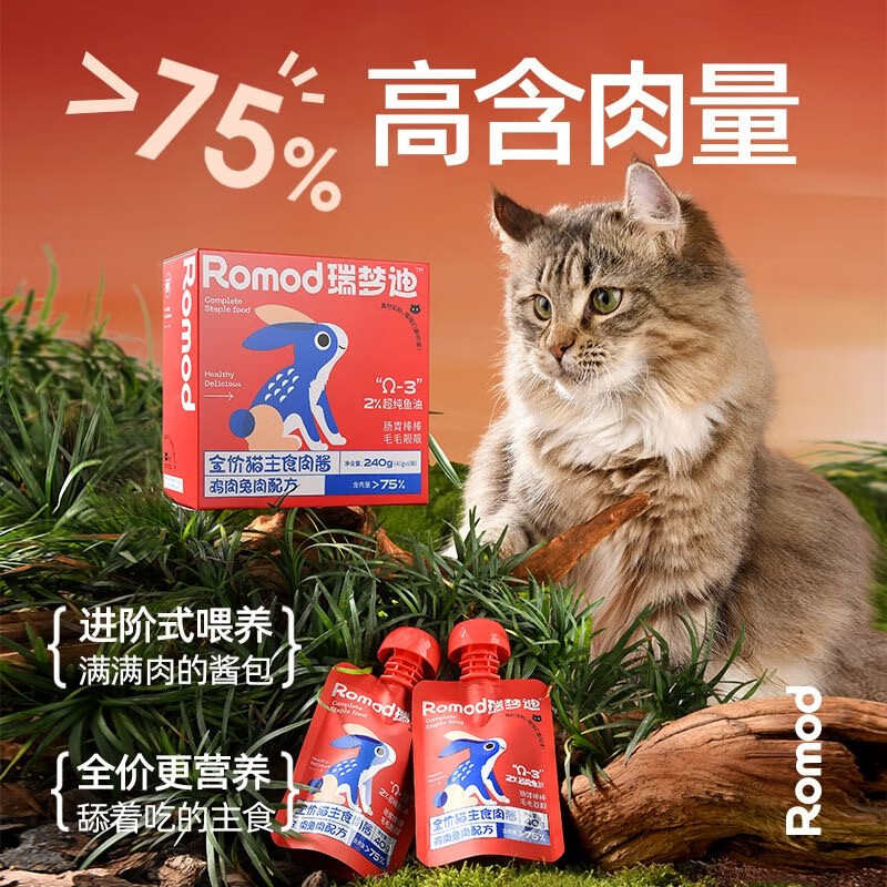 瑞梦迪鱼油主食餐包猫咪营养肉酱鸡肉兔肉主食肉酱包增肥猫罐头湿粮 全价猫鲜肉酱餐包(鸡兔肉味) 6包