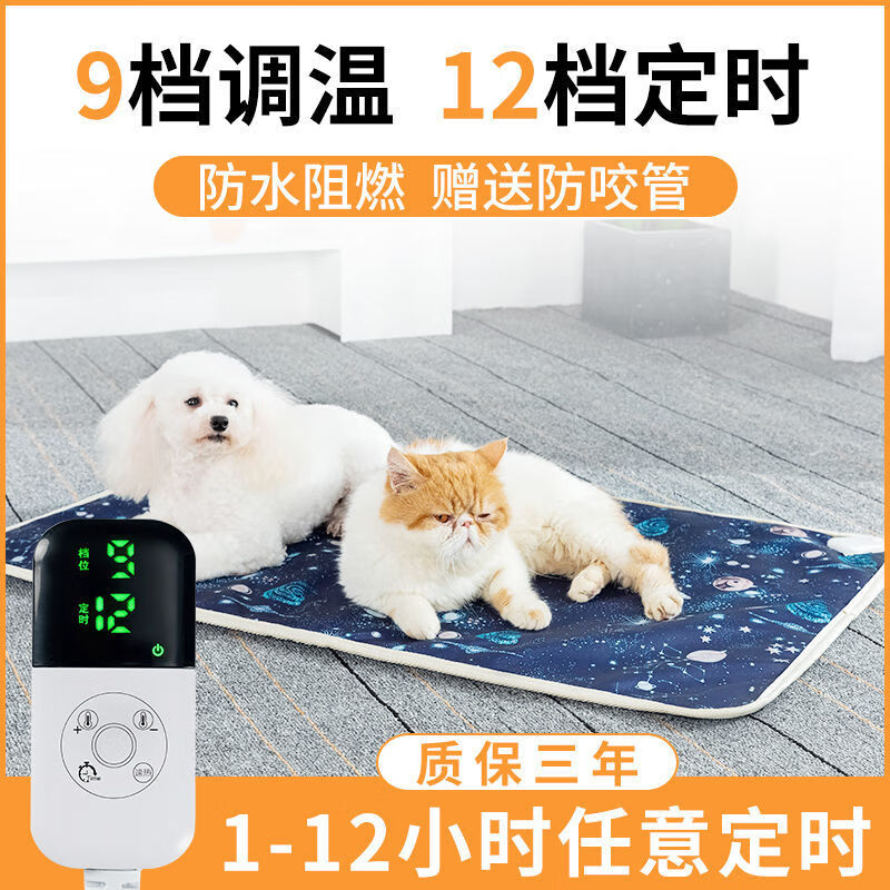 皆百福 宠物电热毯防水耐咬宠物电热垫暖垫防抓防漏狗猫咪猫用恒温猫咪电热毯 黑色猫咪【9档定时】 30*30cm(圆形)