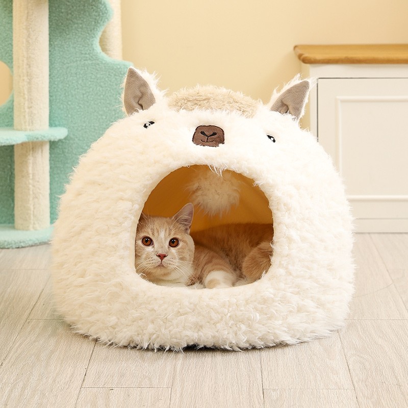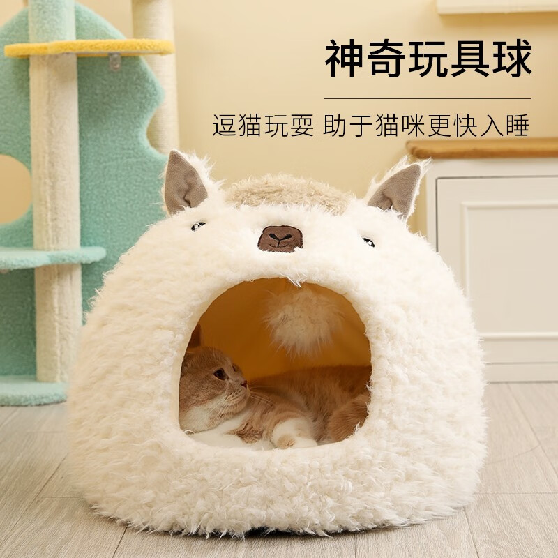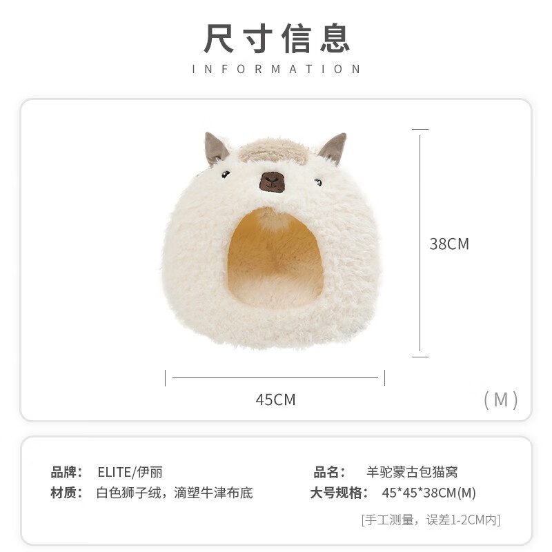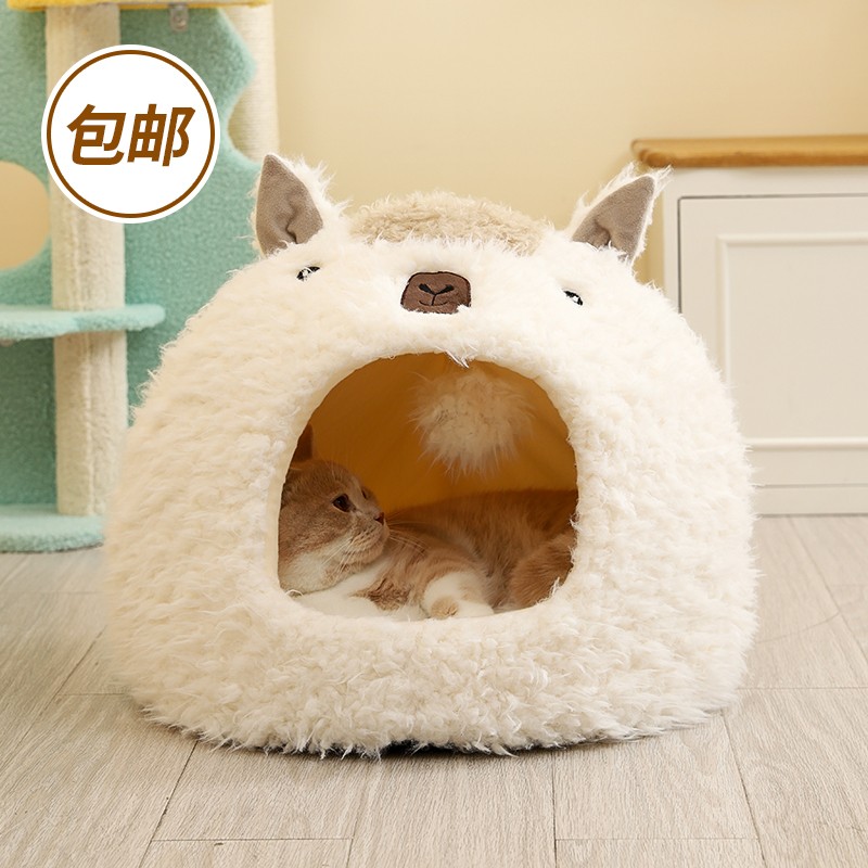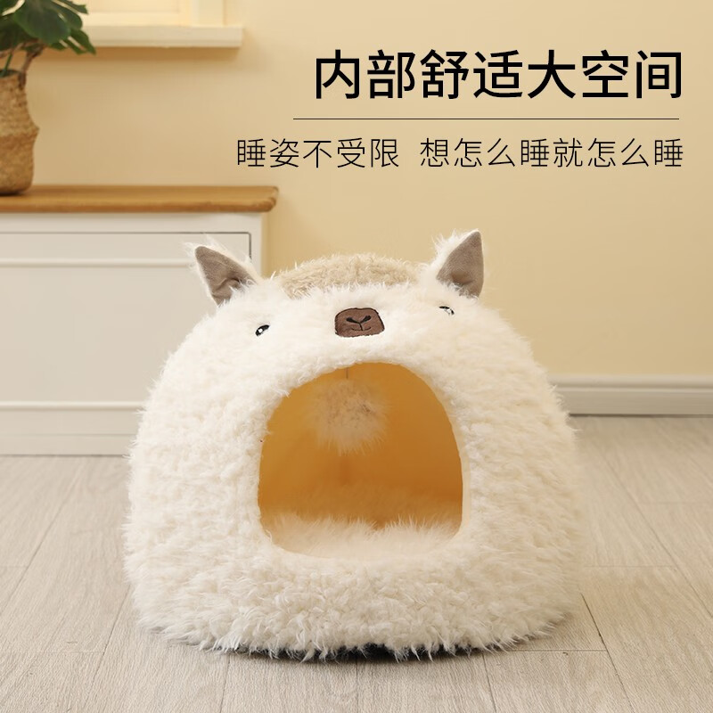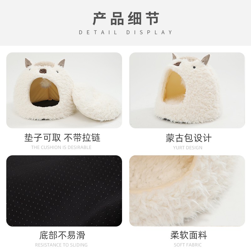 伊丽猫窝冬保暖狗窝半封闭式猫床垫四季防风宠物房子宠物窝 羊驼蒙古包【18斤内猫/10斤内狗】