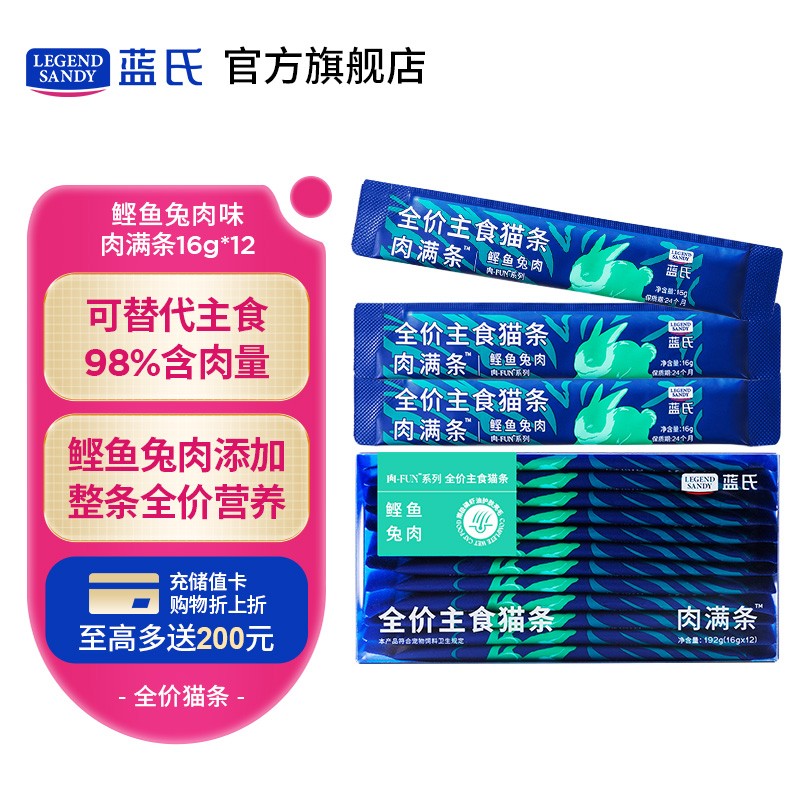 LEGENDSANDY蓝氏全价主食猫条肉-FUN 肉满条湿粮零食0诱食剂 鲣鱼兔肉味 16g*12