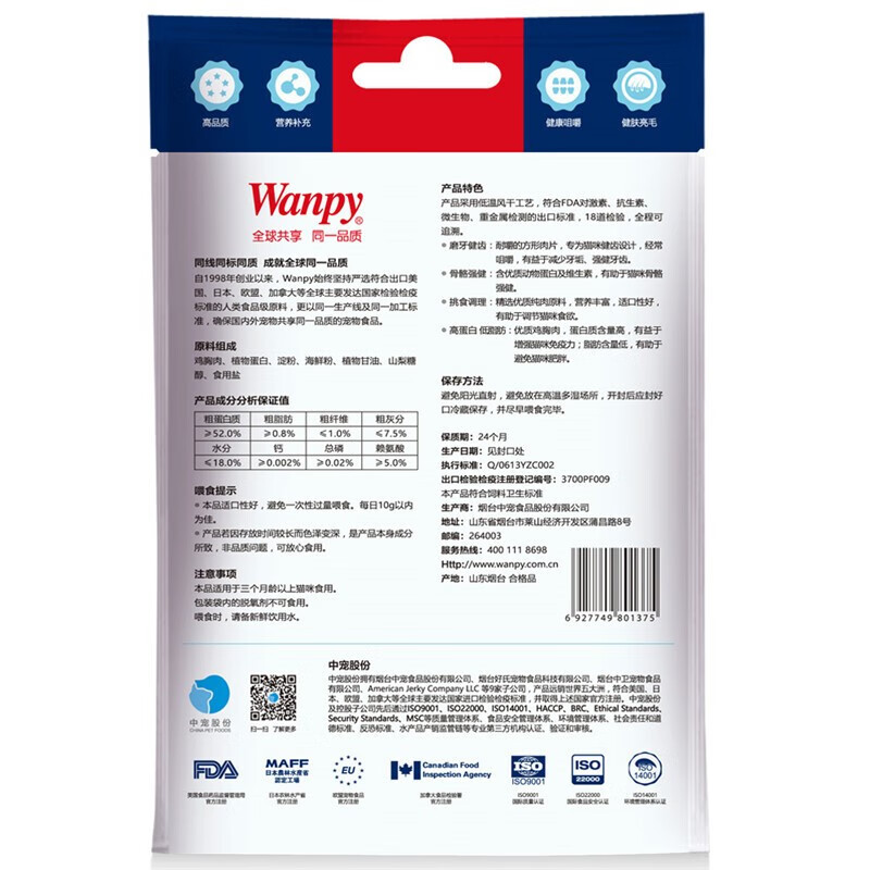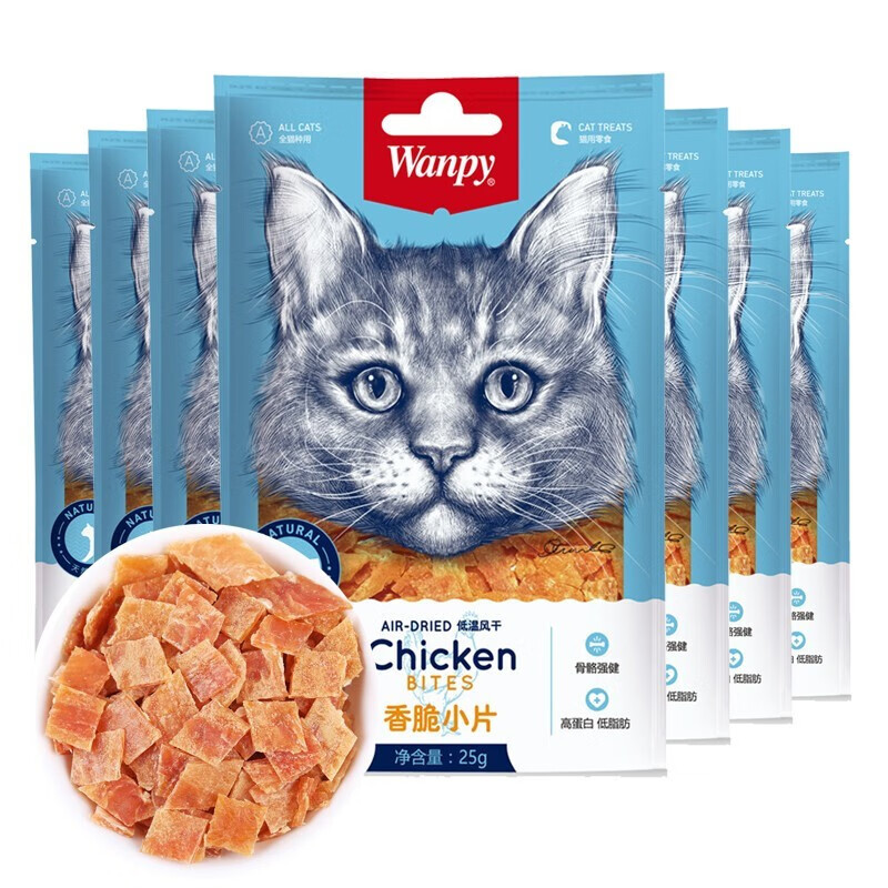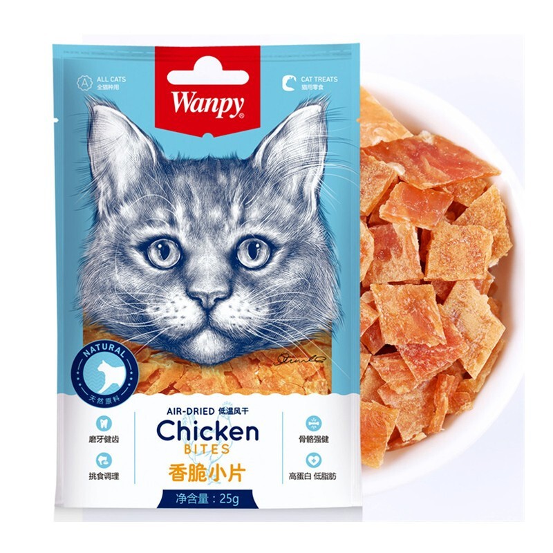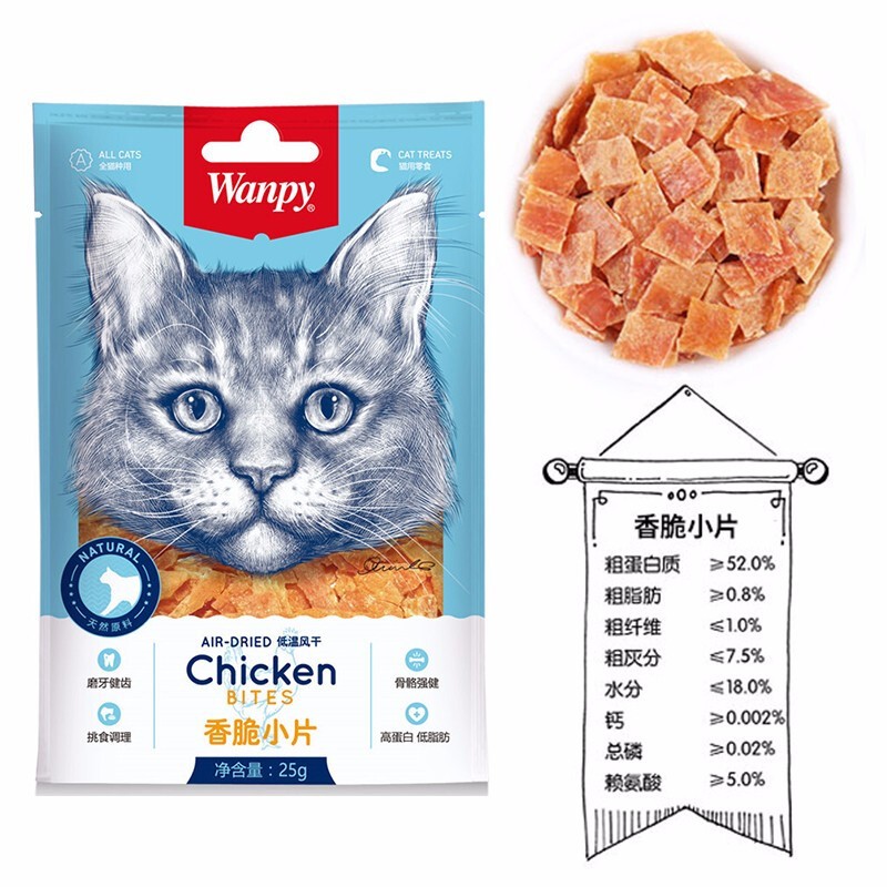 顽皮(Wanpy)猫零食冻干鸡肉条磨牙棒成猫通用营养罐头零食 香脆小片300g(25g*12袋)