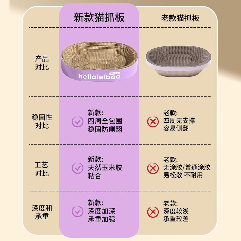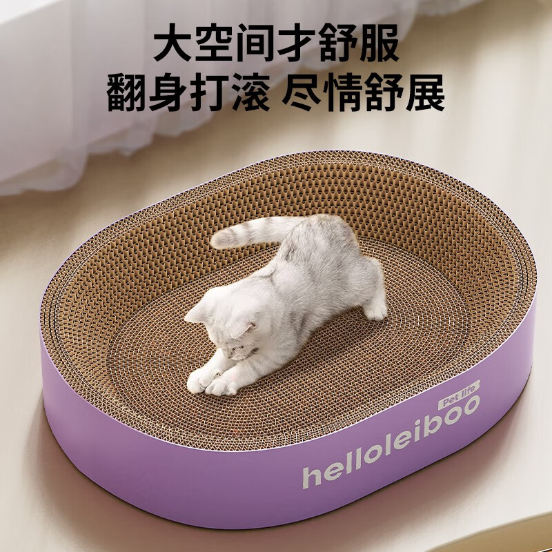 HELLOLEIBOO徕本圆形猫抓板猫窝一体耐磨耐抓不掉屑特大号瓦楞纸猫爪盆抓不烂玩具 新款椭圆形|大号【 适合15斤内】