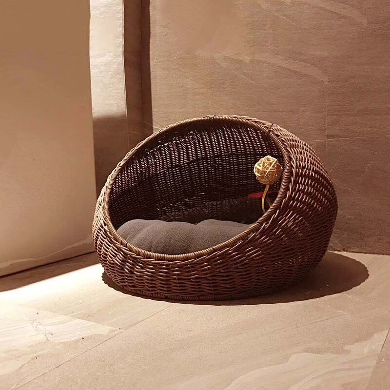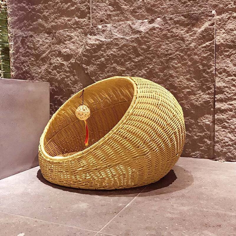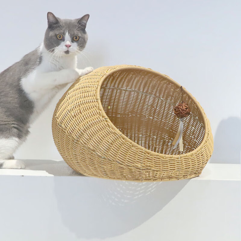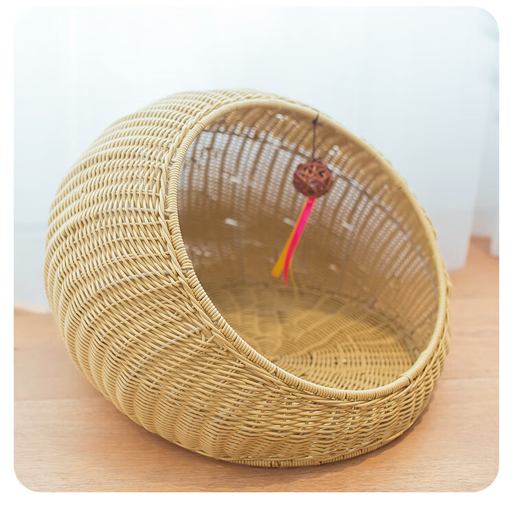 OIMG猫窝四季通用夏天藤编猫咪别墅猫屋幼猫可拆洗网红房子夏季 杏色(送垫子) L-大型(建议14斤内猫狗使用)