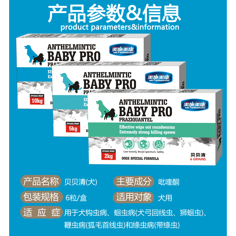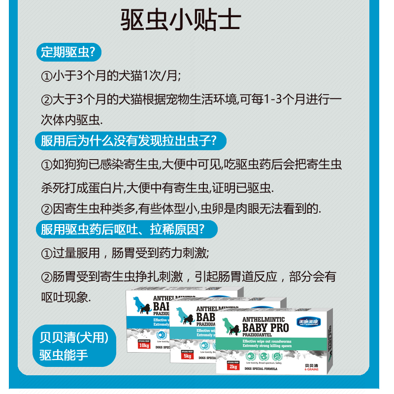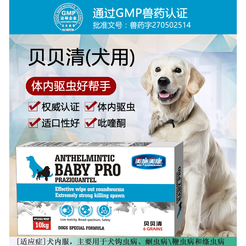 美施美康 狗狗驱虫药体内驱虫药打虫药品 驱除绦虫吸虫蛔虫鞭虫钩虫寄生虫 贝贝清牛肉味颗粒(大型犬10kg)*6粒/盒