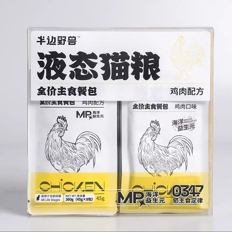 醇粹(Purich)半边野兽液态猫粮全价主食餐包猫咪猫条补水湿粮 360g(45g*8袋 鸡肉配方