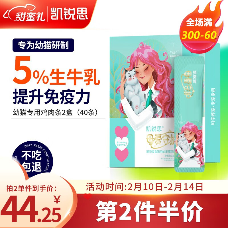 凯锐思 猫咪零食 鸡肉猫条奶幼猫鸡胸肉罐头增肥发腮专用营养湿粮补钙 5%生牛乳幼猫猫条40支