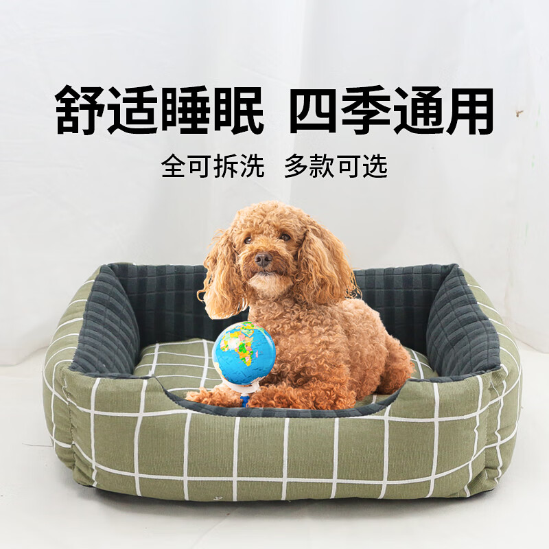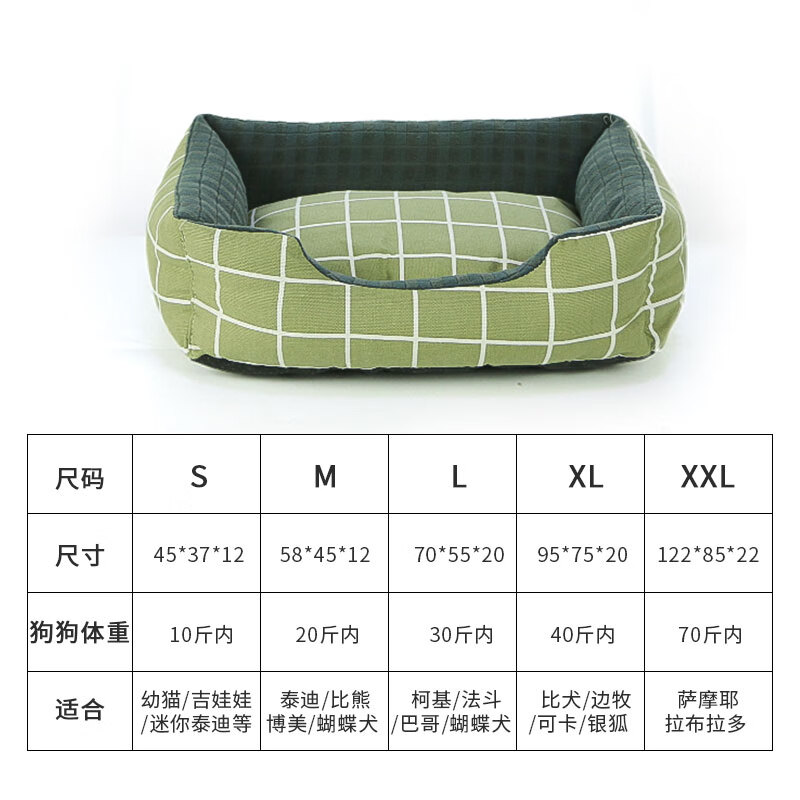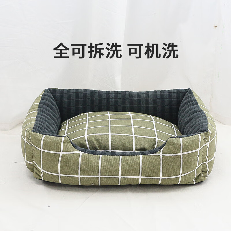 憨憨乐园狗窝冬季保暖可拆洗狗床大型犬宠物窝泰迪垫子小型犬金毛狗狗用品 经典绿色格子 【S-小号】45*37*12cm(建议10斤