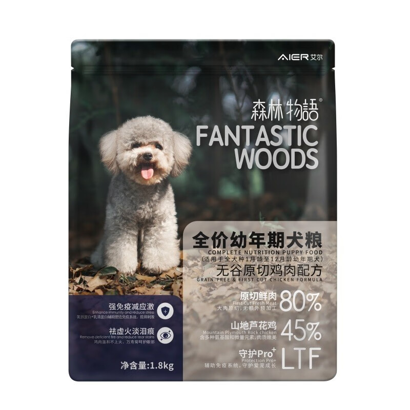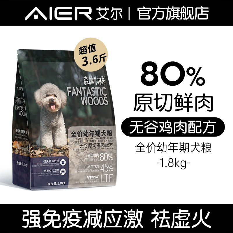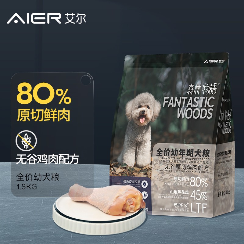 艾尔(Aier)狗粮森林物语全价幼年期犬粮(无谷)原切鸡肉配方 1.8kg3.6斤