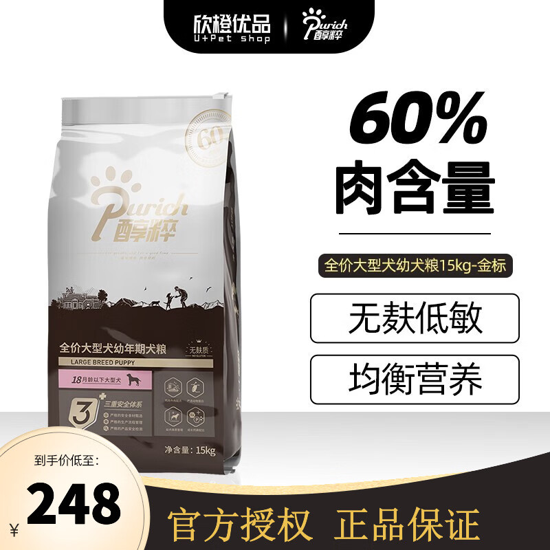 醇粹(Purich)狗粮大型犬成犬幼犬全价全期粮金标黑标纯粹主粮 大型犬幼犬丨金标15kg