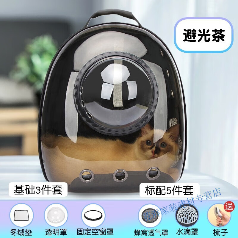 PETIO TOGETHER YOUR PRECIOUS LIFE猫包外出便携透气太空舱大容量宠物双肩背包猫书包装狗袋猫咪用品 透明茶色12孔【避光防应激】冲 基础配置透明罩 固定圈 双面PU