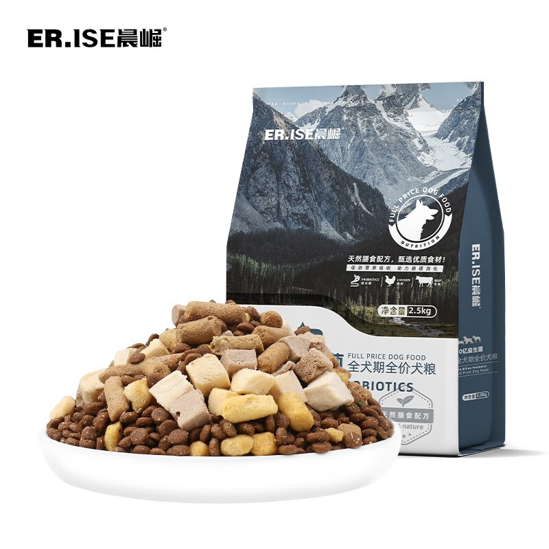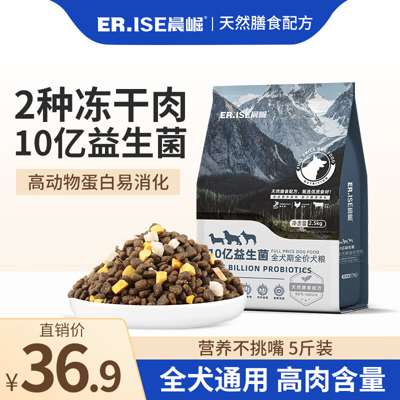 晨崛狗粮5斤成犬幼犬泰迪柯基比熊金毛冻干通用小型犬大型犬粮2.5kg 10亿益生菌【添加冻干】5斤