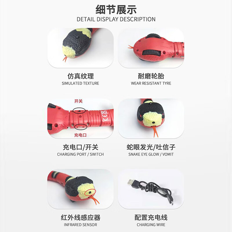 猫管家 逗猫玩具 猫猫整蛊玩具仿真 猫玩具电动 响尾蛇智能 避碍感应蛇 逗狗自动躲避蛇 爬行动物