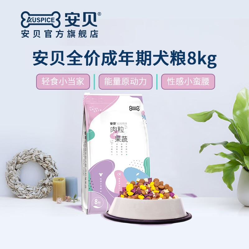 安贝狗粮泰迪比熊小型犬成犬狗粮肉粒果蔬五拼狗粮牛肉味8kg 牛肉味 8kg 成犬 通用型