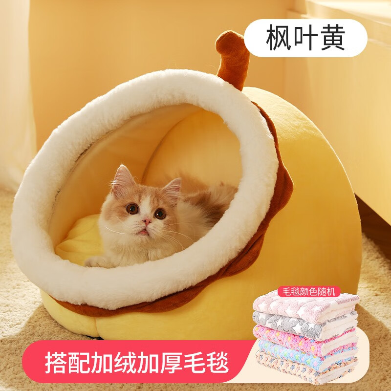 Kimpets猫窝冬天保暖半封闭冬季加厚猫房子小型犬网红大猫窝四季通用狗窝 黄棕小狮子 星星垫子 L【多只猫咪睡15斤内狗】超大空间30%的宠妈选择