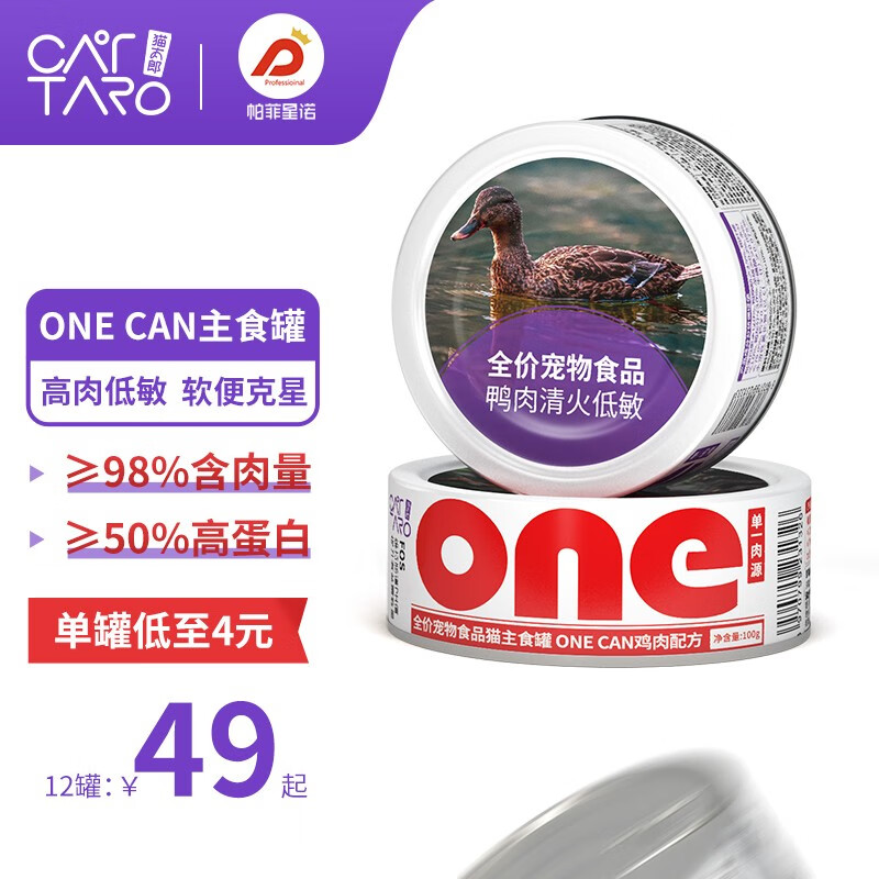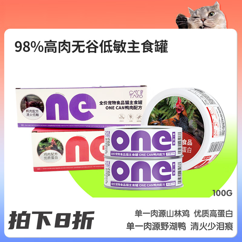 猫太郎onecan猫咪主食湿粮罐头高蛋白发腮长肉鸡鸭6罐 【蛋白高营养】山林鸡100g 1盒 100g*6罐