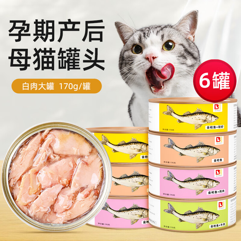 BOMAY母猫产后猫罐头金枪鱼白肉猫妈妈怀孕哺乳期专用营养补充剂大罐装 6罐 默认【170大罐装白肉】混合口味